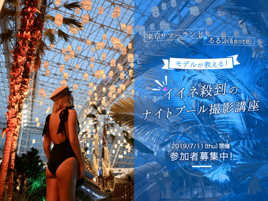 JTBグループで旅行・ライフスタイル情報を提供する株式会社JTBパブリッシング(本社所在地: 東京都新宿区 代表取締役 社長執行役員:今井敏行)が運営する、20~30代女性に向けた旅・おでかけ情報のWebメディア『るるぶ&more.』と、株式会社東京サマーランド(本社所在地:東京都あきる野市 代表取締役社長:中西充)の『絶景!ナイトプール2019』がコラボレーションし、プレオープンイベントの一環として『モデルが教える!イイネ殺到のナイトプール撮影講座』を開催します。