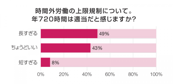 49%が「年720時間は『長すぎる』」と回答