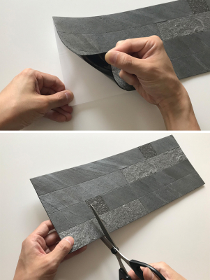 リアルストーン タイルシール「Slicel」(スライシル)は、薄くスライスされた本物の石素材の壁デコレーション用シールです。