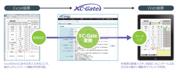 帳票電子化ソフトウェア『XC-Gate』ではExcelで生成された既存の紙帳票を同社の特許技術により電子化し、様々な現場でペーパーレス化を実現します。