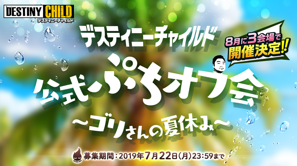 東京、大阪、福岡の3会場で、『デスティニーチャイルド公式ぷちオフ会~ゴリさんの夏休み~』が開催決定!!