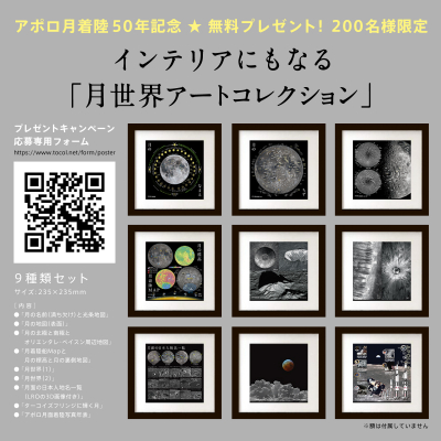 TOCOLは、200名限定の『アポロ月着陸50年を記念「月世界アートコレクション(9枚セット)」無料プレゼントキャンペーン』を開始した。(7月17日)