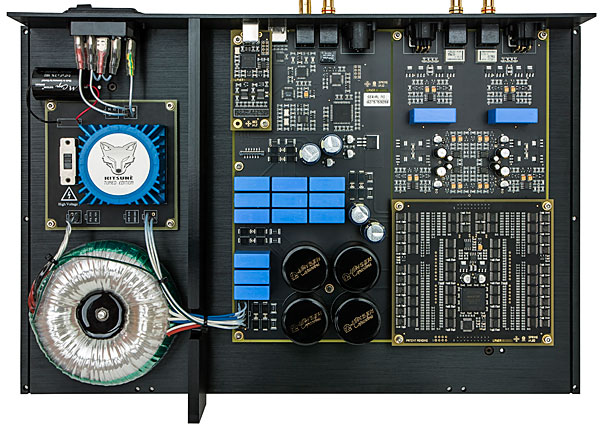 Level2のチューニング内容をすべて含み、すべての銅配線と回路基板プラグとコネクターを排してモジュール基板間は直付けとして1.5mmの純銀線に置き換えられます。IECインレットコンデンサはムンドルフの銀箔/オイルキャップに、標準ヒューズはAudio Horizon Platinum Referenceに置き換えられています。電源はGreen Label、 O-Type 99.99%純銀線を用いた手巻きトランスに置き換えられるなど多々の高級パーツの採用とチューニングが施されています。またより純度の高い銅製ケースと黒アルマイト処理アルミニウム製の筐体が奢られます。生産は1台ずつ熟練したエンジニアがチューニングを行う必要が有り、受注生産となる為納期はかかります。このモデルにはキツネのロゴが筐体や電源ユニットに入り特別仕様であることがわかります。
