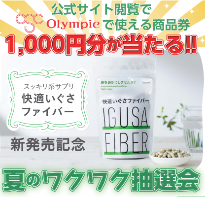 2019年7月28日(日)株式会社ニッポン放送プロジェクトは、テレビ等で話題の食物繊維豊富な「いぐさ」を使用したサプリメント「快適いぐさファイバー」の新発売イベントとして、スーパーマーケットOlympic(オリンピック)下丸子店にて「夏のワクワク抽選会」を開催する。「快適いぐさファイバー」の公式サイト閲覧で、Olympicで使える商品券他が当たる抽選会に参加できる。