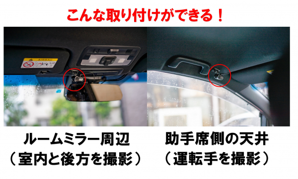 2カメラドライブレコーダーに付属されるケーブルの長さは約7mでとっても長いため、短い50cmのケーブルがあればクルマのフロント側への配線でとっても便利です。ルームミラー周辺に設置して「室内を撮影」したり、「スマホながら運転」防止として運転席を撮影するなど個人ユーザーだけではなく、タクシーや社用車、運送業者など法人ニースに活用可能。