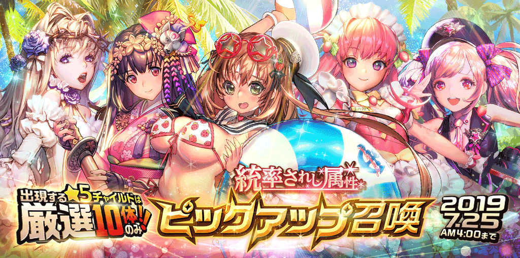 5つ属性が各2体ずつ、厳選10体の★5チャイルドが出現するピックアップ召喚が開催!