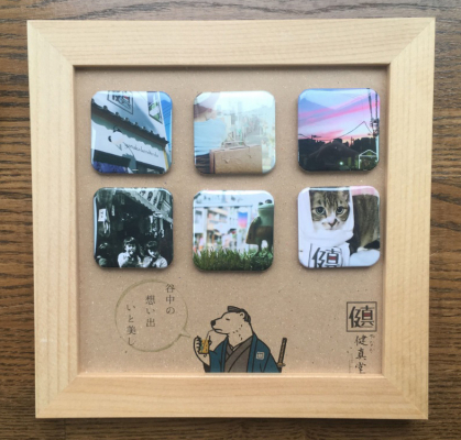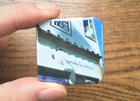 お客様のスマホ等で撮影した写真やInstagramに投稿した写真を、缶バッチやマグネットに加工し、1週間程度でご自宅にお届けするサービスです。『想い出CanRoll』では、谷中を訪れた想い出の写真を6枚選択でき、やなか健真堂オリジナル台紙にセットしてお届けします。