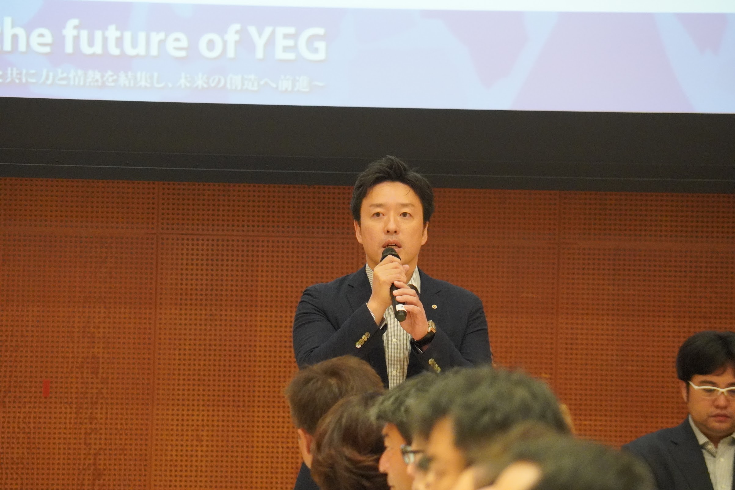 (注)全国大会とは、年に一度、各地のYEG会員、約6000人が集まり、交流と研鑽を通じて地域経済を担うリーダーとしての資質の向上と意識の高揚を図るとともに、新しい地域文化の創造と豊かで住みよい地域づくりに向けた役割と責務について認識を深め、地域経済社会の将来にわたる健全な成長・発展に寄与する事を目的に開催するYEGの会合として最も大規模なものです。