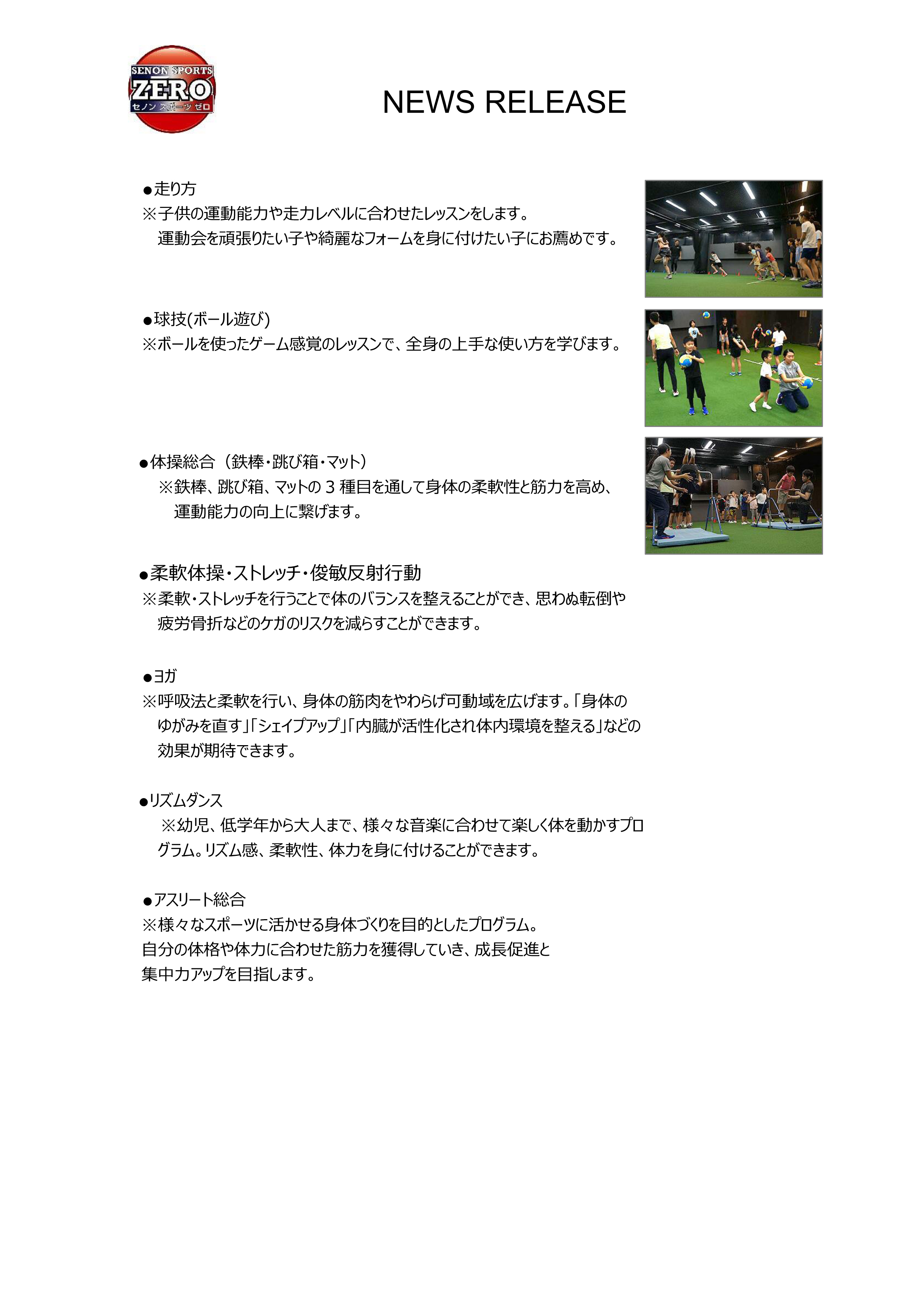 目と脳のトレーニング、走り方、球技(ボール遊び)、体操総合(鉄棒・跳び箱・マット)、アスリート総合