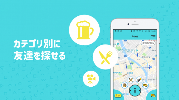 PiNSを使えば、あっという間に半径10km圏内が友達作りの場に変化します。
