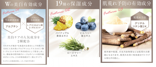 1. Wの美白有効成分配合