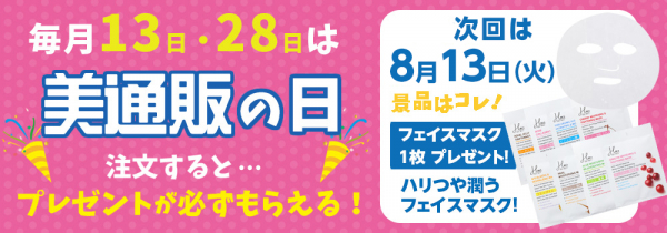 「美通販の日」は、毎月13日と28日の月2回、開催いたします。
