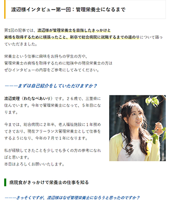 今回のリニューアルでは、新企画「栄養士インタビュー」の連載がスタートしました。