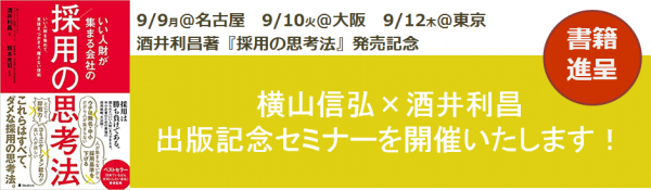 書籍出版を記念して、弊社代表取締役社長の横山信弘と著者の酒井利昌による特別セミナーを開催します。