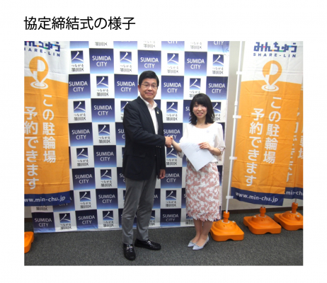 墨田区は、主に本所吾妻橋駅周辺等の駐輪場の不足していたことから駐輪場用地を探しておりましたが、大規模な駐輪場の設営に必要な土地等を確保することが難しい状況でありました。そこで、当社の『みんちゅうSHARE-LIN』と連携することにより、コストをかけずに駅周辺に駐輪場を増やすことができ、管理面でも放置自転車の警告や撤去等の手間を軽減することができるのではないかと期待し、今回の締結に至りました。