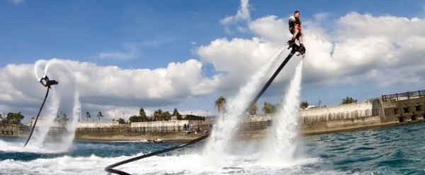フライボードは、2012年フランス発祥の最新のウォータースポーツです。つい先日、その産みの親とも言われているフランス人発明家が英仏間のドーバー海峡横断に成功したことでも話題になりました。彼が自在に高速で空を飛ぶ様子をおさめた動画は世界中で注目されております。水上でのフライボードは、かつて日本でもCMやテレビ番組で取り上げられたことも記憶に新しいです。