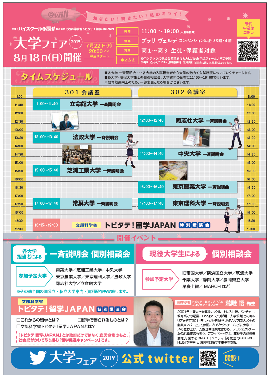今年度の「大学フェア2019」では、下記を中心に実施します。