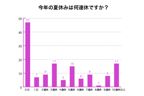 連休日数が分散する中、「夏休みなし」が全体の約3分の1ほど。