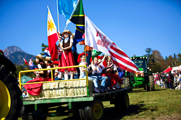 「ポール・ラッシュステージ」と「ハーベストステージ」の2つのステージでは、2日間にわたり、ライブやチアリーディング、コーラスやバレエなど、様々なパフォーマンスが披露され、お祭りを盛り上げます。アメリカの収穫祭さながらのブルーグラスミュージックのバンド演奏や、清里開拓のシンボル「ジョン・ディア」トラクターによるパレードショーは、お祭りの目玉の一つです。