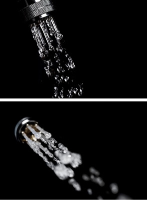 東大阪の業務用ガスコックを製造する技術の一部を受け継ぎ、当社代表・高野が開発した節水ノズルです。外部電源を使用せずに水圧と空気を利用して水の球を断続的に発射させる脈動流を出すことにより、洗浄力を確保したまま使う水の量を最大95%節約することができます。また、本体を回すだけで水量の調節ができるほか、ノズルを下に引っ張るだけでゴミ詰まりをとることができ、簡単にメンテナンスをすることが可能です。