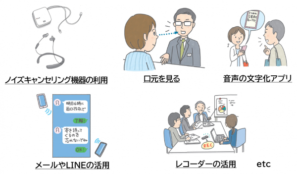 ノイズキャンセリング機器の利用・口元を見る・音声の文字化アプリ・
