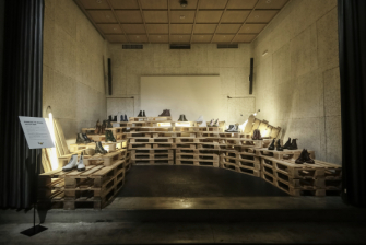 物流用パレットをアパレル製品などの陳列台などに転用したもので、パレットデポでは「ユーロパレット」と呼ばれる欧州規格品を採用。インダストリアルなデザインと耐荷重1.5トンの堅牢性、レゴブロックのようなレイアウトの自由度が特徴です。