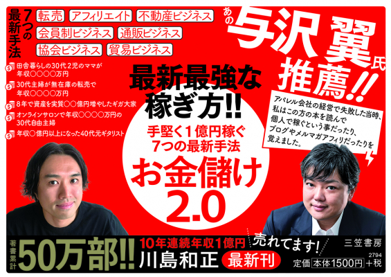 8/26 「お金儲け2.0」著者の川島和正(おかげさまで30000部突破) @kawashima7777