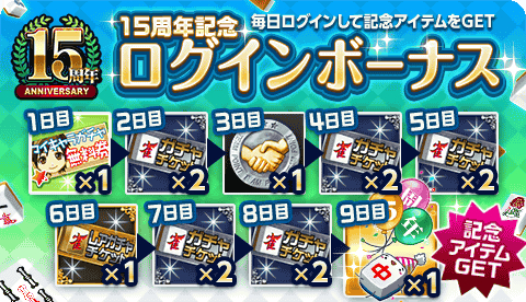 ログインボーナスが超豪華になって、さらに15周年を記念した特別なアイテムも獲得できます