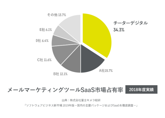 チーターデジタル株式会社(本社:東京都千代田区、代表取締役社長:橋本勇人、以下チーターデジタル)は、株式会社富士キメラ総研(本社:東京都中央区、代表取締役社長:田中一志)が2019年8月5日に発行した市場調査レポート「ソフトウェアビジネス新市場 2019年版-国内の主要パッケージおよびSaaSを徹底調査-」において、チーターデジタルが開発・提供するメール配信システム「MailPublisher」がメールマーケティングツール市場の売上占有率No.1を獲得したことを本日発表いたしました。