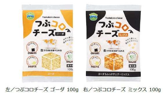 本件は、4月に開催した新製品試食会で大変好評をいただいた「つぶコロチーズ」の一般消費者向けイベント第二弾になります。チーズはシュレッド(細切り)カットのものか、大きめのポーションものが多く、加熱したりサラダなどにトッピングした際にチーズの食感を楽しむには、ダイス状にカットすることが望まれています。「つぶコロチーズ」は小さなキューブ状で、食感も残しながら手軽に振りかけたり混ぜ込んだりすることができるといった発想とカット技術で誕生した新しい形状のチーズです。