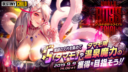 株式会社ステアーズ(本社:東京都新宿区、代表取締役社長 趙 栽攸、以下ステアーズ)は、スマホ版/PC版『デスティニーチャイルド』において、本日8月29日(木)より、「ワールドボス・トライアル《タマモ》」を開始しましたことをお知らせいたします。