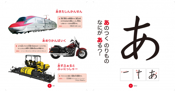 趣味に生きる人のための出版社スタジオタッククリエイティブは2019年9月19日に、児童書「のりもの100だい あいうえお ずかん」を発行予定です。あいうえお順に登場する100台超の乗り物と一緒に、平仮名の読み書きを覚えましょう。書き順を見ながら、大きな文字をなぞれる誌面レイアウトを採用しました。さらに、お子様が自分で読めるやさしい文章や、ルビ付きの乗り物解説も添えています。見開きに、該当のひらがなが繰り返し登場するので、視覚を通して平仮名に馴染めます。巻末には、ひらがな、カタカナ、濁音、半濁音の表に加えて、乗り物の名前を当てるクイズ付きです。