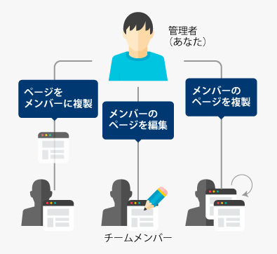 ・「チーム」に属する「メンバー」が持つページの閲覧・編集・複製