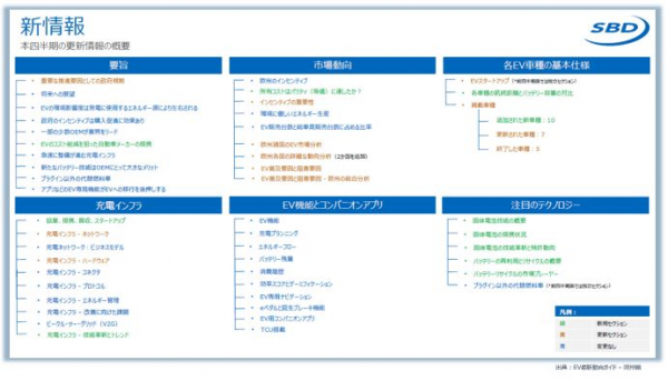 市場動向:インセンティブ制度、EV販売台数など、EV市場の現状と各市場におけるEV普及の推移と普及および阻害要因を掲載しています。