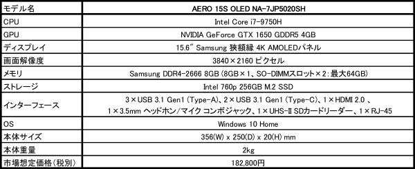 https://www.gigabyte.com/jp/Laptop/AERO-15-OLED--Intel-9th-Gen