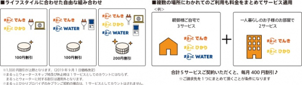 『まるっとシリーズ』の大きな売りとなっているのは、“まるっと”まとめることでのお得感です。『まるっとシリーズ』の契約数に応じて、毎月の利用料金から最大1,000円の割引が適用されます。請求先が1か所であれば複数の場所での契約も可能なため、たとえば単身赴任や子どもの一人暮らしなどでかかる毎月のお金を抑えることができます。