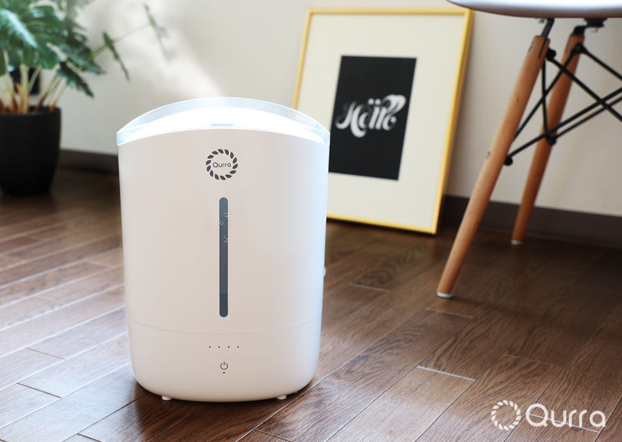 当社オリジナルの生活家電と生活雑貨ブランド「Qurra(クルラ)」より2018年11月に発売された「Qurra Mois Racile」は、微細なミストで乾いた空間を一気にうるおし、長時間連続運転できる超音波式加湿器です。
