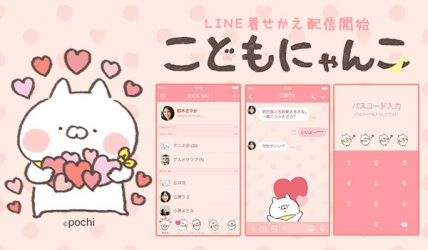 LINE着せかえ最新作は、「ハート」をテーマにシンプルなデザイン。ベビーピンクのカラーリングでまとめることで「こどもにゃんこ」のかわいらしさが引き立った着せかえとなっております!
