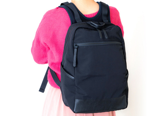 ショルダーベルトに伸縮性のあるネオプレーン素材を使い、肩の負担を軽くした機能とデザインが融合したスタイリッシュなリュック。