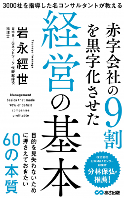 株式会社あさ出版(代表取締役:佐藤和夫、所在地:東京都豊島区)は、岩永 經世 著『赤字会社の9割を黒字化させた経営の基本』を2019年9月13日 (金)に刊行いたしました。