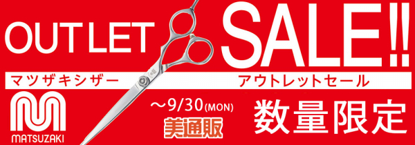 プロ用シザーは高額なものが多いため、有名なブランドシザーを使ってみたいと日頃お考えでも、購入まで至らない方も多いと思われます。「美通販」では、もっと気軽にシザーを試したいと言う理美容師ならびに美容学生の皆様のご要望にお応えしたく、今回の「マツザキシザー アウトレットセール」を開催するに至りました。「増税前に必要な備品は購入しておきたい」多くの方々にも最適なセールとなっております。本キャンペーンは9月30日(月)まで開催しますので、この機会にたくさんの方々にご利用いただきたいと考えております。