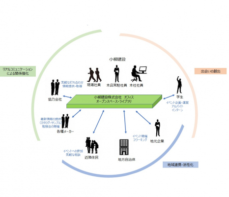 働き方改革では制度や効率化ツールの活用などの導入は進んできましたが、環境から働き方を変えることに取り組んでいる企業は少ないと考えています。今後は、「アイデアと成果を生むオフィス」として商品化も予定しており、建設業である当社は、今回の新社屋のコンセプトやノウハウが企業を働く環境から支援することを目指し、まずは自社からこの環境を活用し、社内や業界、地域の働き方の変化をリードしていくことを目指しています。