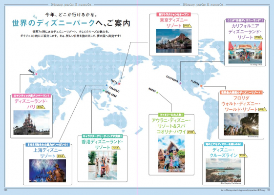 巻末にはディズニーのスペシャルコンテンツとして、世界中のディズニーパークガイドやミッキーマウスの歴史をオールカラーでご紹介。前回版より掲載ページを増量し、新しいアトラクションの情報などもたっぷり楽しめる一冊です。