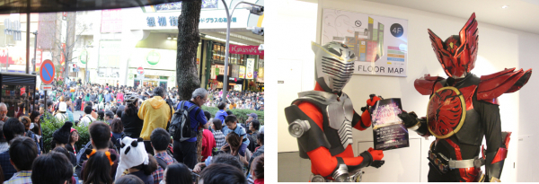 画像は「カワサキ ハロウィン2018」の様子(左:銀龍商店街、右:DiCE川崎チネチッタ通店内の利用客)
