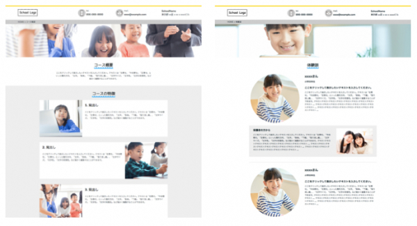 塾、英会話、プログラミング教室、各種習い事など、スクール系事業に特化したテンプレートです。