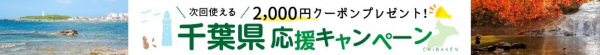 10月中に千葉県の宿泊施設に宿泊されたお客様に、次回予約時に使える2,000円割引クーポンを進呈します。本クーポンは2020年3月31日(火)まで利用可能です。予約はゆこゆこネットからのみとなります。※一部施設で使用不可