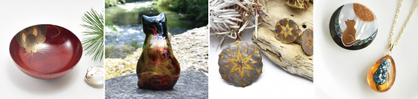 石川県山中漆器の伝統工芸士・蒔絵師として活躍する針谷親子。様々な素材との出会いによって、日々新しい漆の魅力を生み出しています。