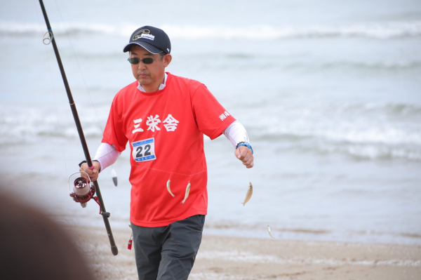 予選でサイズが小さいと分かりましたので、極小の鈎に変えて、さらにエサのジャリメのシッポをとにかく小さくしました。100メートルくらい引き釣ってアタリを待ち、連掛け(複数尾)を狙いました。それで尾数が稼げたのだと思います。優勝の喜びは仲間に真っ先に伝えたいです。次回大会では連覇できればうれしいですね。