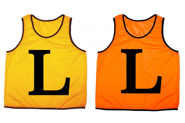 どんな天候でも見やすい色。Lという文字を見やすい大きさで前後にプリント。バレーボールはもちろん、サッカー、フットサル、イベント、運動会、スポーツ大会、マラソン大会、数々のシーンでチーム分けに大活躍。着脱しやすいデザイン。