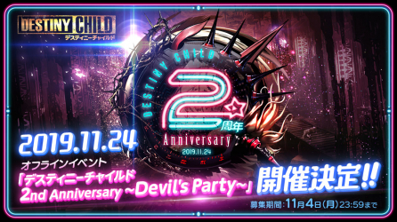 2周年を記念し、11月24日(日)にオフラインイベント「デスティニーチャイルド 2nd Anniversary ~Devil's Party~」の開催が決定!!